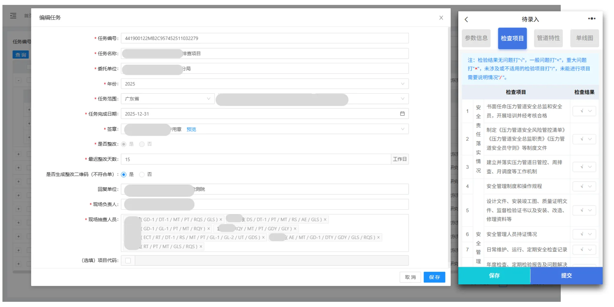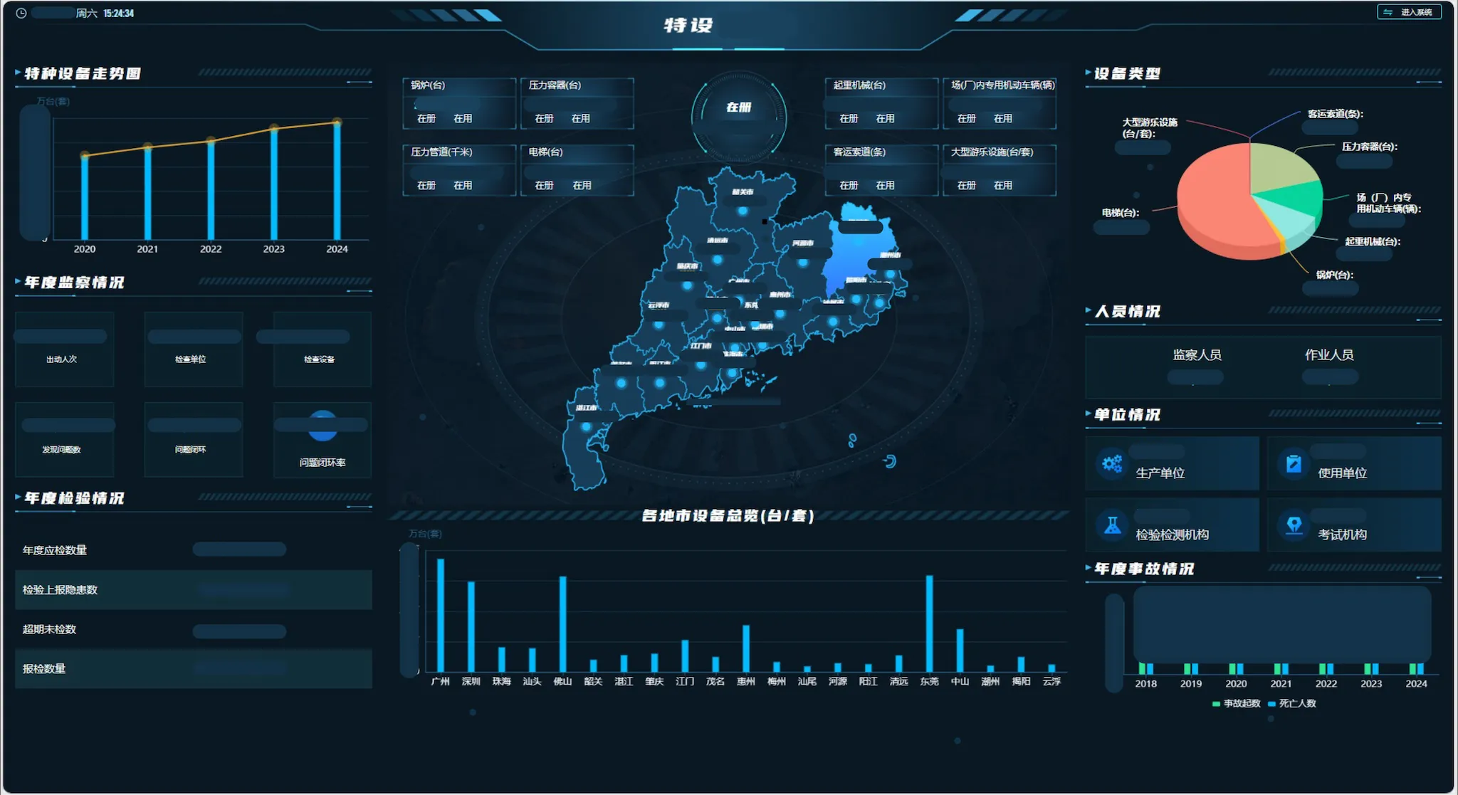 特种设备监管全流程管理,包括许可、设备单位监管、隐患闭环、老旧电梯监管、检验对接等,实现特种设备的数字化、智能化、网络化管理。 整体技术成熟先进。仅现手机端场检查模块迭代超过200次,检查记录自动关联日常专项任务,自动根据法律条文生成法律文书,自动生成指令书并内嵌CA签章。 全面支持国产化服务器和国产化终端 实施案例:广东省特种设备电子监察系统