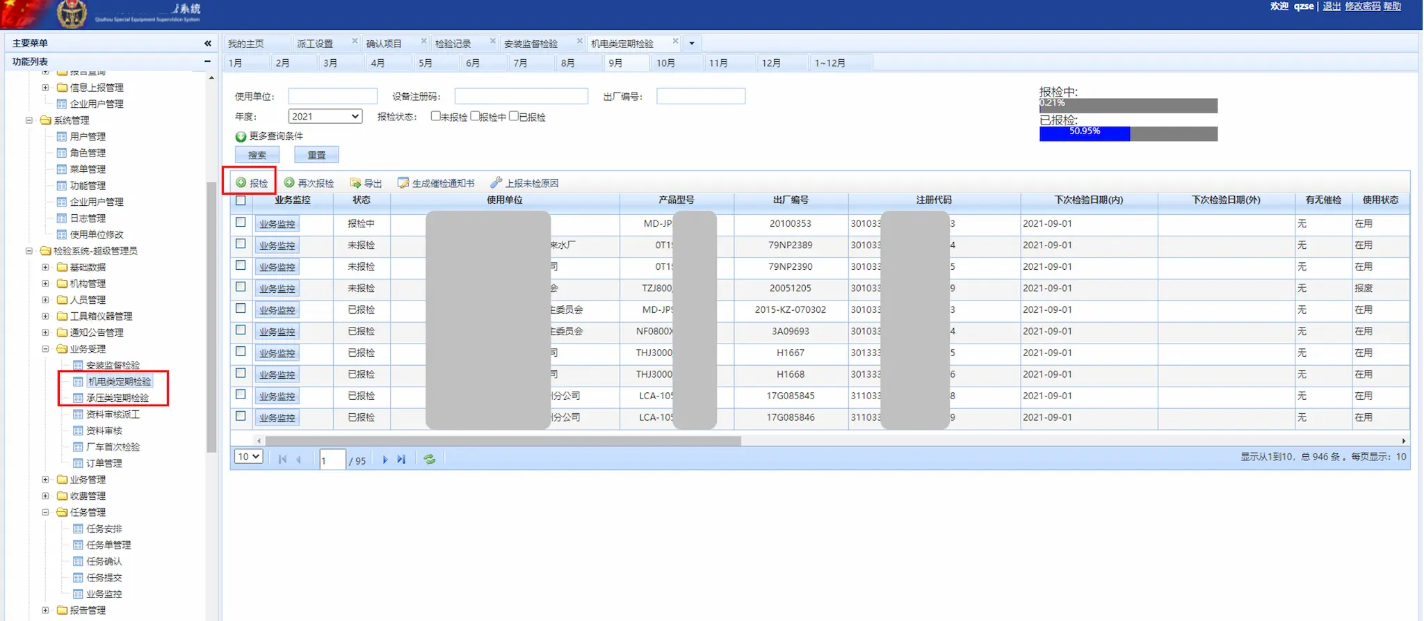 特种设备检验全流程管理,包括网报、收费管理、派工管理、检验录入审核审批发放、设备单位人员管理、隐患管理、超期设备管理、对接监管机构等。 灵活报告系统。用户可自己修改报告格式、内容,支持PC和手机端报告录入,大量报告默认数据,减轻检验员负担,自动CA签章。 全面支持国产化服务器和国产化终端 实施案例:广东省特种设备检测研究院东莞检测院等